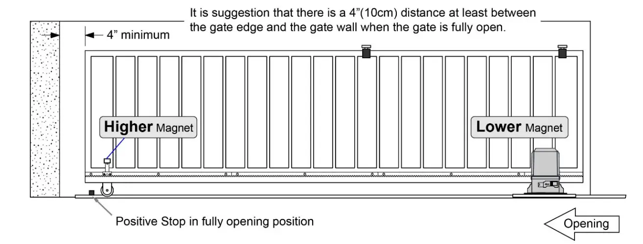Warning: Improper magnets installation may cause the gate to crash into the end barrier, which is very dangerous!