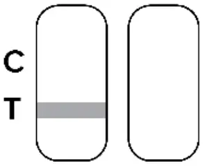 ![]() | NEGATIVE: Only one coloured band appears, in the control region (C). No apparent coloured band appears in the test region (T). |