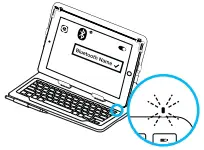 The status light blinks blue to indicate that the keyboard is discoverable, ready for pairing with your tablet.