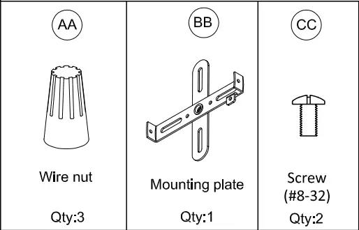 - Push all wire connections into the outlet box. Attach fixture (A) to mounting plate (BB). Use screw (CC) to secure tightly.
