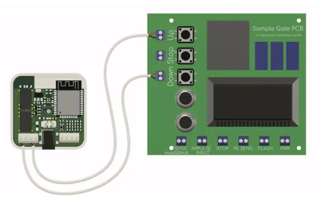 Different manufacturers name their control inputs differently. The most common terms are as follows: “CYC”, “IMPULSE”, “IMP”, “KBUTT”, “OPERATE”, “OSC”, “PB”, “PP”, “SBS”, “SS”, “START”, “STRT”, “SW”, “TRG”, “WALL BUTTON”, “WALL CONTROL”. Connect Remootio’s control output to the appropriate input terminal of your garage door / gate control board. Please visit https://www.remootio.com/pages/compatibility and enter the make and model of your gate or garage door to search for the correct wiring diagram.