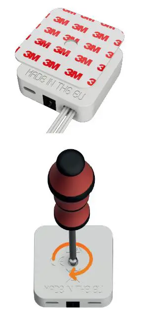 Use a screwdriver to assemble the Remootio unit. Make sure that you do not damage the wires during the assembly. Apply the double sided tape on the back side of Remootio as shown below: