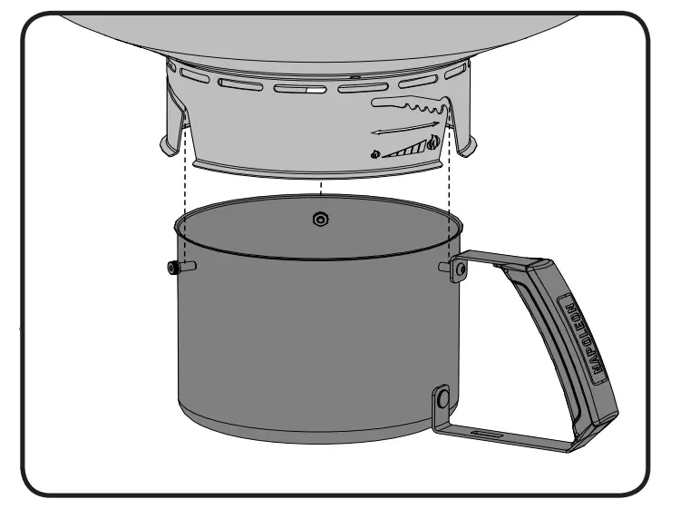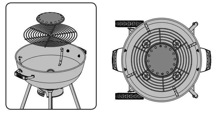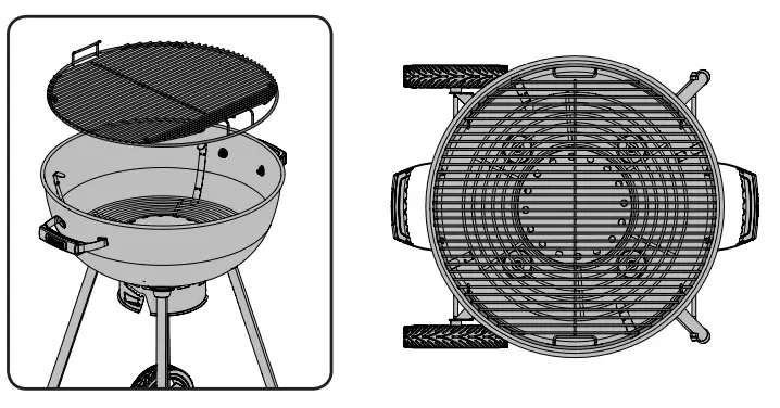 | 1. Fully open the vent on the lid and base. Remove the grill lid and remove the cooking grill | 1. Fully open the vent on the lid and base. Remove the grill lid and remove the cooking grill. |