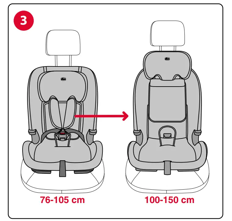 100-150 cm: When using the car seat in vehicles equipped with rear vehicle seat belt with integrated air bags (inflatable seat belts), follow the car manufacturer’s instruction manual.