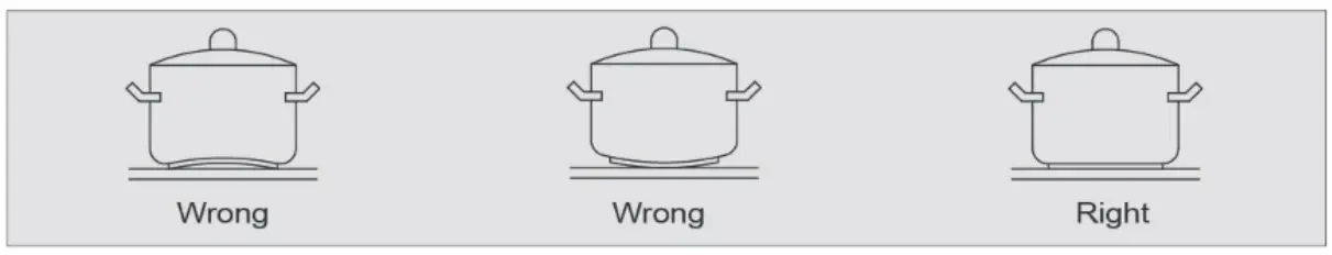 ![]() | Locate pan centrally over tahe burner so that it is stable and does not overhang the appliance. |
