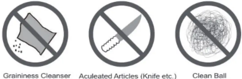 ![]() | Please don’t place any acidic or alkaline substance on the cooktop(vinegar, lemon juice, etc). |