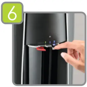 Depress hot water lever to fill the hot tank until water flows continuously. This may take about 1 minute. Repeat steps for cold tank. The cold tank may take about 3 minutes.
