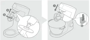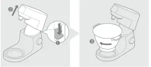 - Raise the mixer head and insert the whisk or beater.