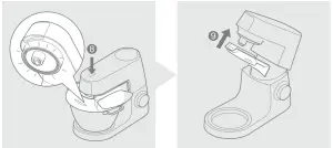 - To remove the head shield, raise the mixer head until it locks. Remove the tool if fitted, then pull the head shield downwards from the underside of the mixer head.