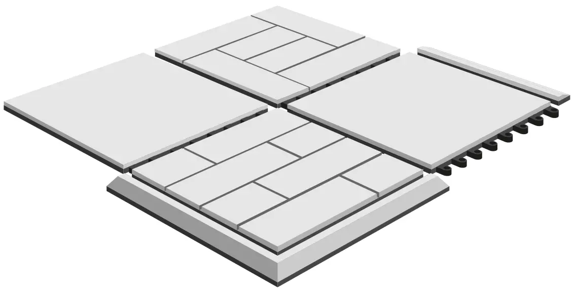 - To prevent mold or deformation install the tiles onto a drained surface with access to sunlight.