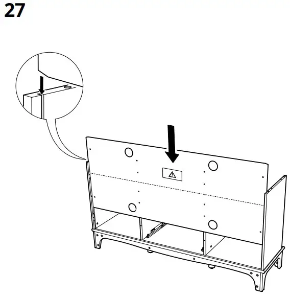 Serious or fatal crushing injuries can occur from furniture tip over. To prevent tip over this furniture must be used with the wall attachment device(s) provided. Screw(s) and plug(s) for the wall are not included.