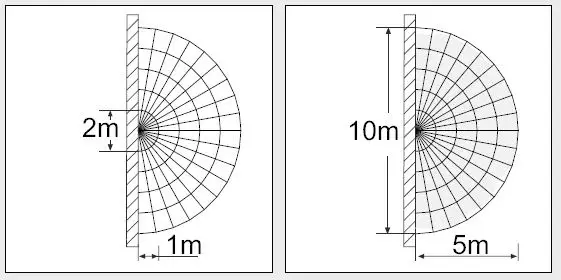 Reach is the term used to describe the radius of” the detection zone produced on the ground when” mounting the light at a height of 2 m.