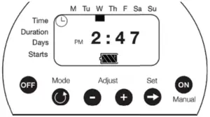 Undo-Alt to change to the next start time and repeat steps 2 and 3 - To turn a start time OFF adjust the HOUR until it reads OFF