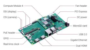 Compute Module 4 (supplied separately). It is designed for use both as a development system for Compute Module 4 and as an embedded board integrated into end products.