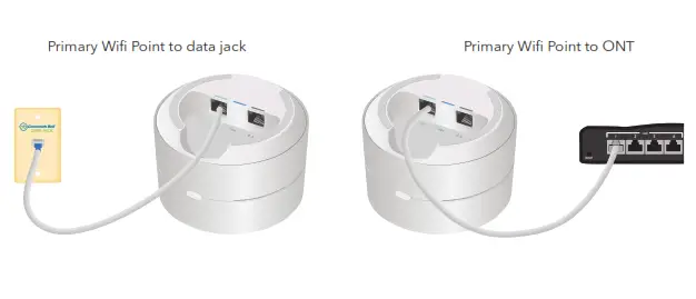 WAN port on your Primary Wifi Point. Plug the other end into the data jack, or into port 1 on the ONT. Make sure the ONT is plugged in and powered on