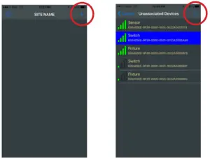 • Controller: fixture(s) will flash and LED will flash Orange - Press upload icon to add the device to a room