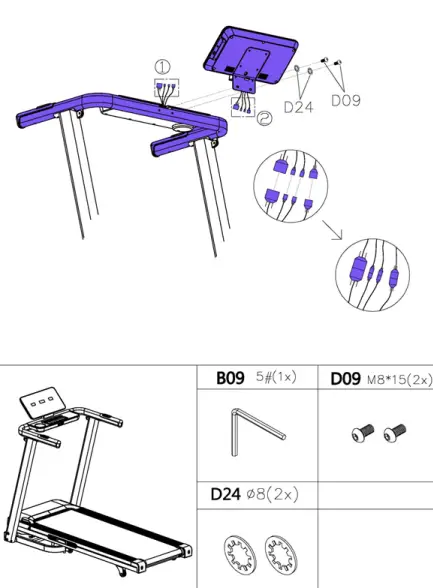 - Connect the treadmill to socket after the treadmill is assembled. Use only grounded socket.