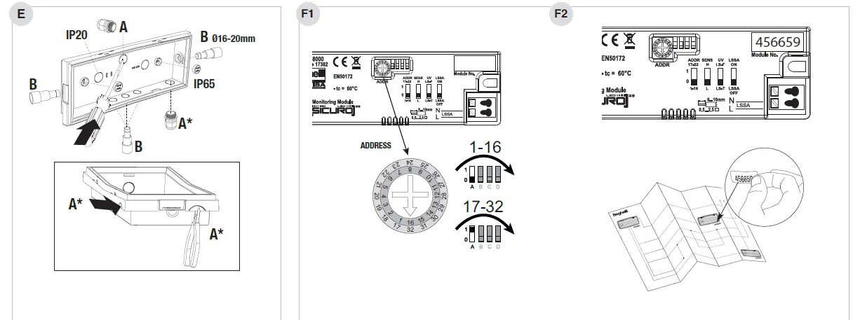 The luminaire is equipped with a rotary switch for manual addressing (Fig. F1). Alternatively the addressing can be done automatically over the central by read-in of the ID (Fig. F2).