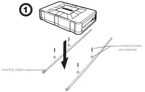 Mounting: Choose a structurally sound location to mount your KICKER powered subwoofer enclosure. Carefully check the areas where the mounting straps will be placed. Make sure the mounting screws will not puncture the gas tank/brake lines/wiring or interfere with any mechanical parts on the underside of the mounting surface. Choose a location that allows at least 4″ (10cm) of open ventilation for the amplifier. If possible, mount the enclosure in the climate-controlled passenger compartment.