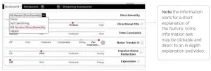 Advanced features are prescribed per program and can be modified from their default settings selecting from the drop down box or by moving the slider to the desired value.