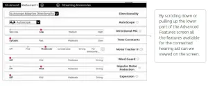 On the fitting screen gain, adjustments can be made as well as modification to advanced features such as Environmental Optimizer II.