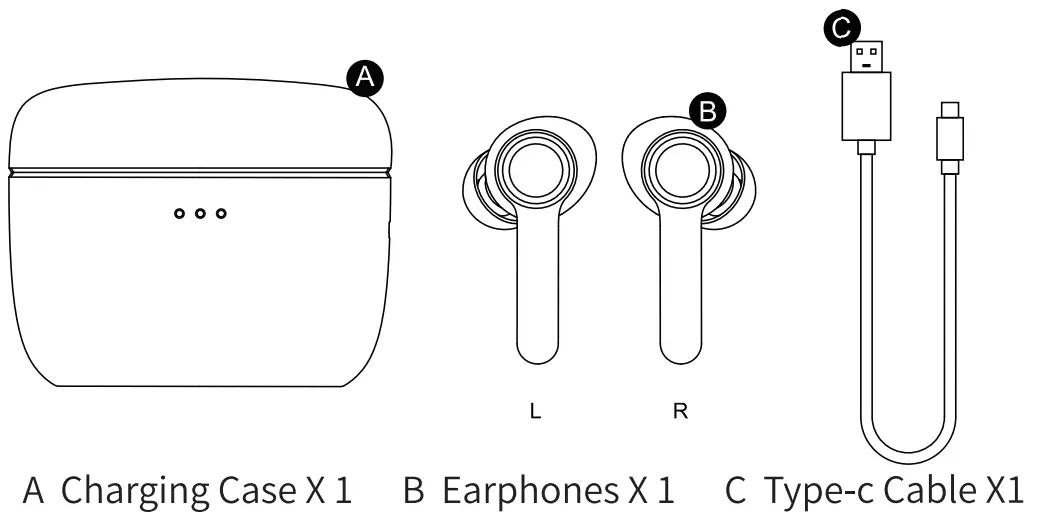 With the Type-c cable, a full charge will take around 2 hours. And the 3 LED lighting of charging case indicates full battery.