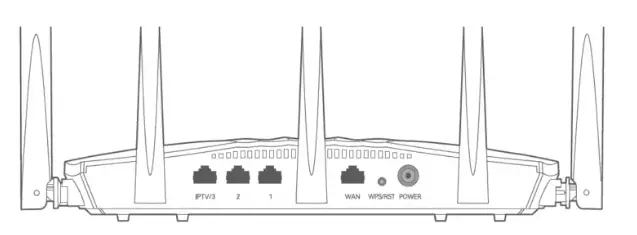 | WPS/RST | Used to start the WPS negotiation process, or to reset the router. – WPS: Through the WPS negotiation, you can connect to the WiFi network of the router without entering the password. Method: Press the button, and theLED indicator blinks green fast. Within 2 minutes, enable the WPS function of the other WPS-supported device to establish a WPS connection.- Reset: When the router is working normally, hold the button down for about 8 seconds, and then release it when the LED indicator blinks orange fast. The router is reset. |