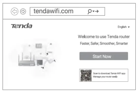 - Start a browser on the client and enter tendawifi.com in the address bar to access the web UI, or run the Tenda Wifi app.