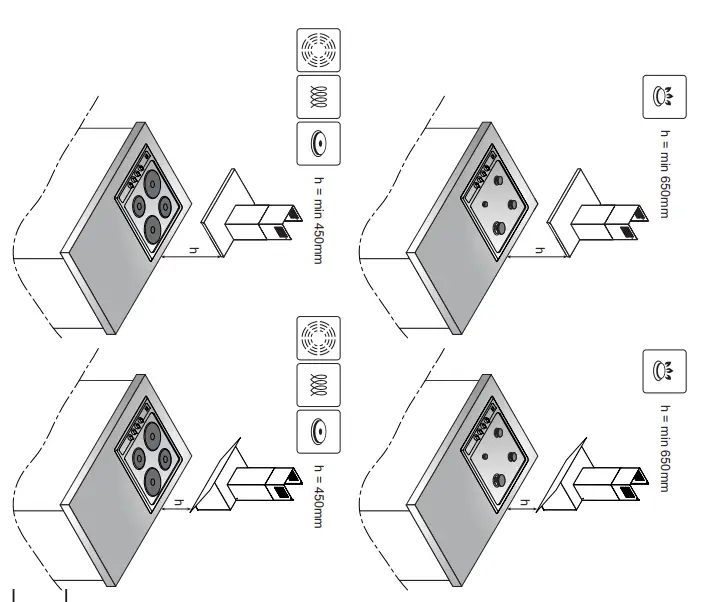 - For details of the installation distance above an electric hob please refer to product technical sheet If the installation instructions of the gas cooker specify a greater distance, this must be taken into account (Fig. 1).