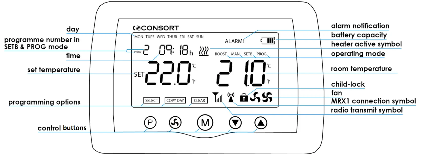 - To set up the heating programme the CRXSL has to be in PROG mode.