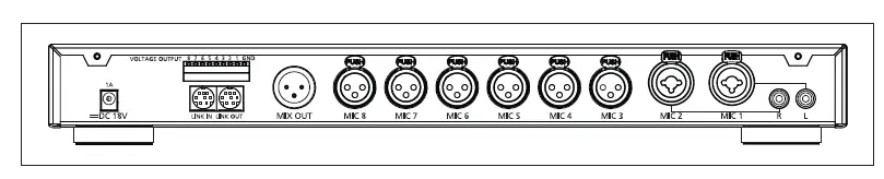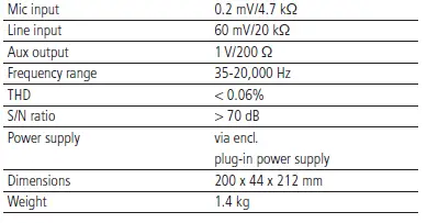 - Mix output, switchable mic/line