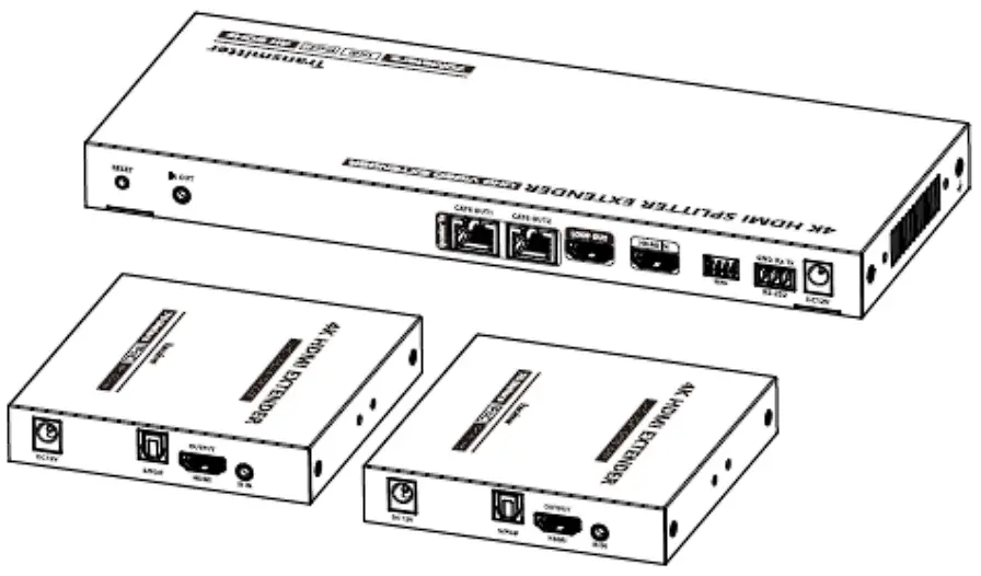 2) The recommended length of the HDMI cable connected to the transmitter is ≤3 meters, and the recommended length of the HDMI cable connected to the receiver is ≤5 meters.