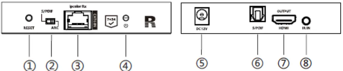 | 4 | RJ45 output port | Connect with Cat6/6A/7 network cables |