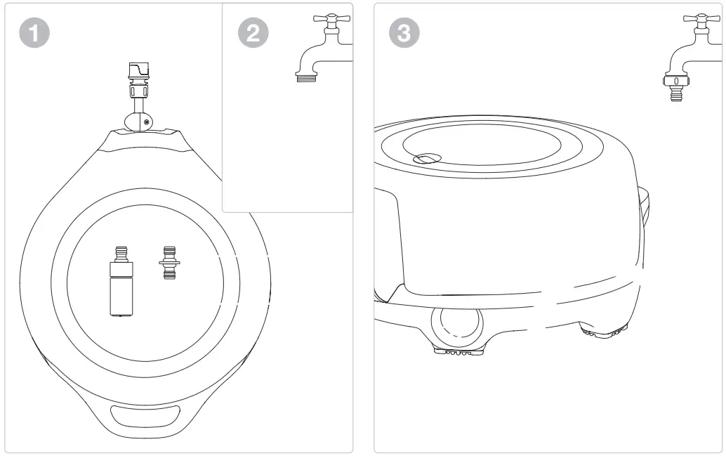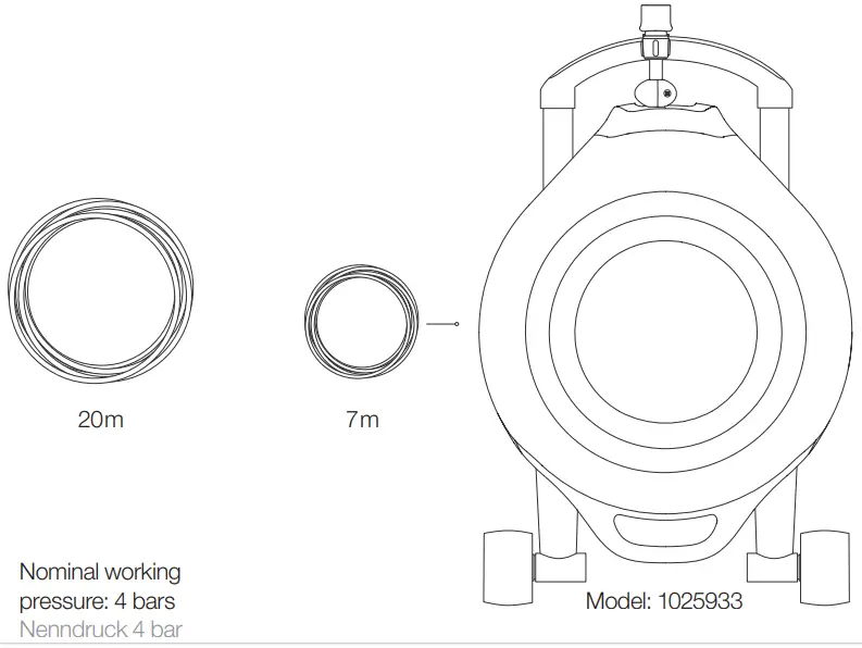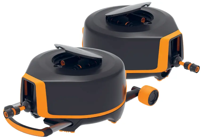 AUTOMATIC REEL-IN: quickly pull the hose and the automatic reel-in will start. Follow the hose to the wheel while the reel is pulling the hose in automatically.