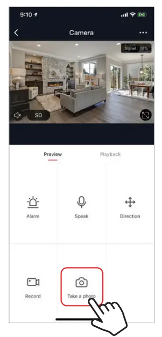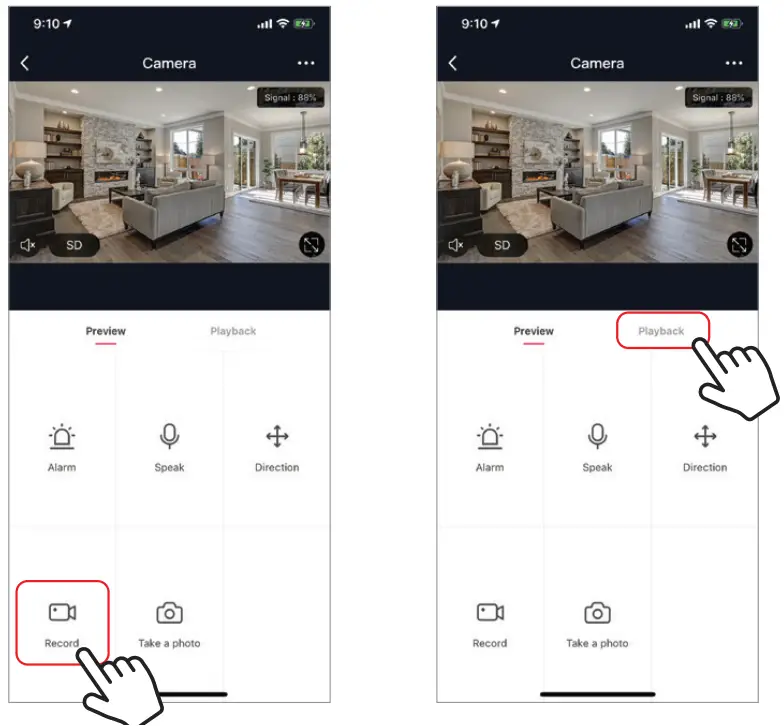 Note: You must have an SD Card in the camera to record video in-app. If you do not have an SD card in the camera, the recorded video will be saved to your phone in the photos and video section.