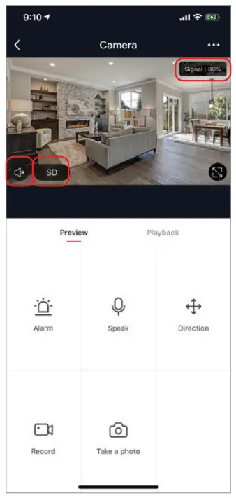 You can control features from the live video feed. There is a volume button that is used to mute and unmute the live feed. Next to that button is the video quality button and it