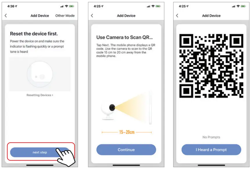 - Follow the directions in the app and hold the QR code on the screen in front of the view of the camera.