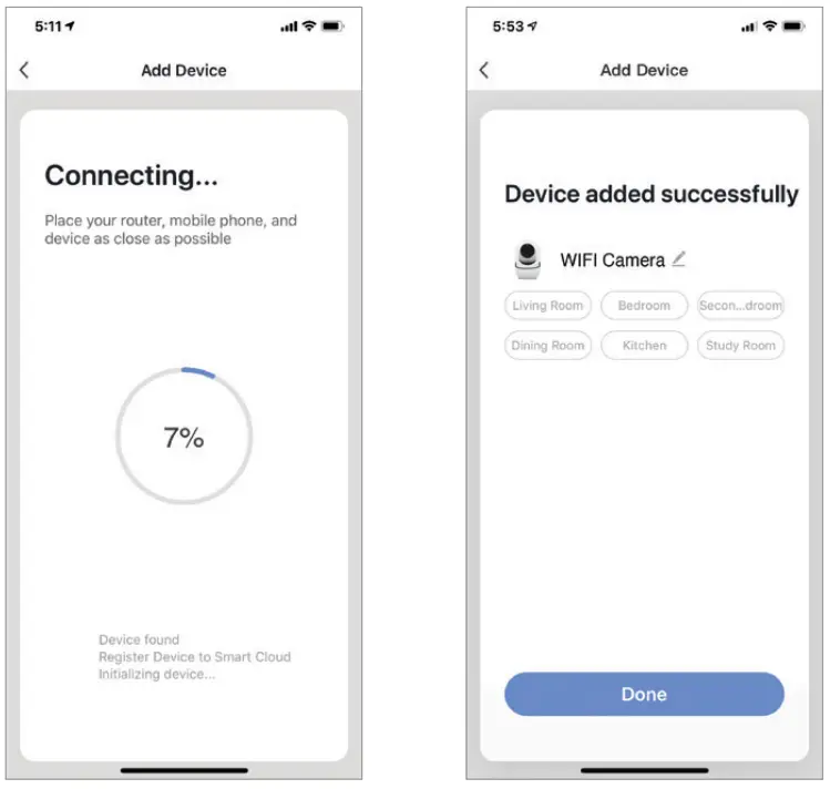 - Once device has been successfully added, name the device that you would like it to be called in the app. The Wi-Fi Camera is ready for use.