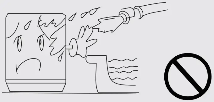 - Do not equip the machine in the bathroom where the place is humid and do not wash the machine.