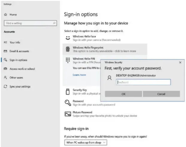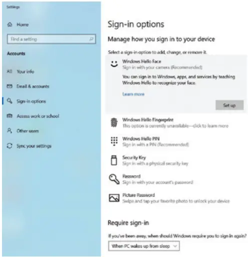 - Open “Settings” and click on “Accounts”, then “Sign-in options”.