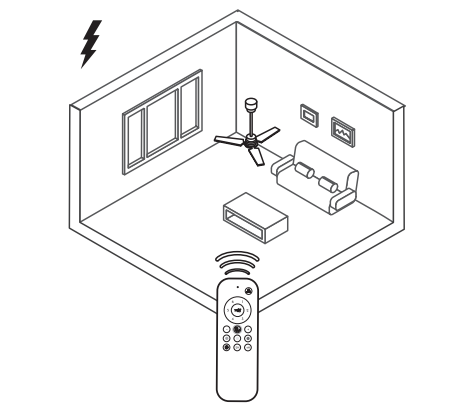 Within 10 seconds, press the synchronization button “ON/OFF light” on each fan during 3 seconds until you hear the signal. If they are within a radius of less than l0m (control range: 8-l0m), all will synchronize at the same time.