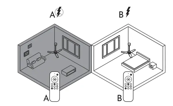 When you restore the fan A and within 10 seconds, press the synchronization button “ON/ OFF light” during 3 seconds until you hear the signal to synchronize remote control A with fan A.