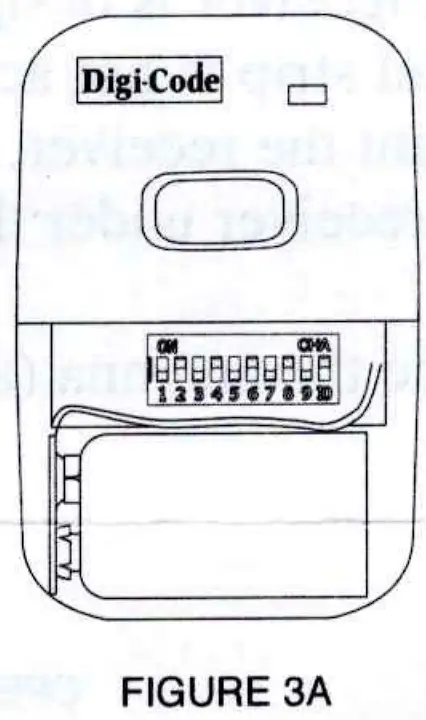 Set the transmitter code switches (See Figure #3A) to match the switches already set on the back of the garage door opener powerhead.
