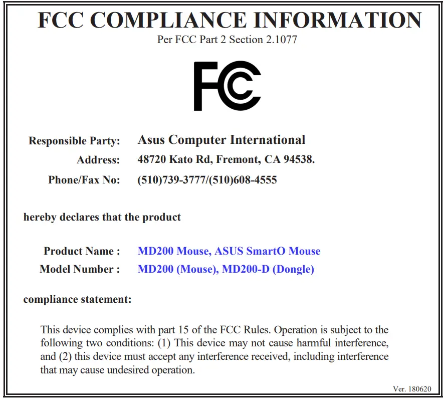 Mouse: 2.4GHz mode: 2402~2480 MHz