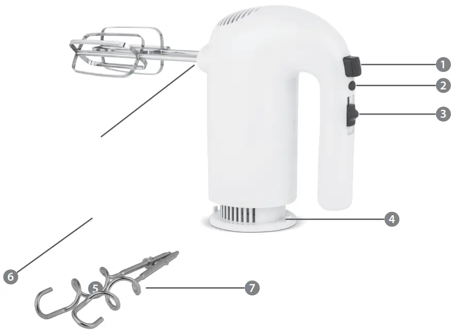 • 1-2 speed setting: suitable for mixing dry ingredients with liquids, folding egg whites or cream into mixtures, stirring sauces or mashing vegetables.