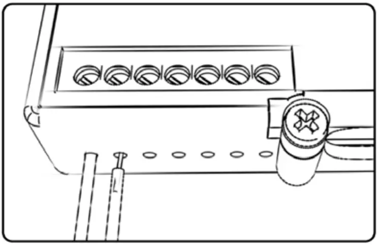 To input wires into the PC6 first remove the rubber plug on the backside of the unit and loosen the screw for the corresponding input. Using a 22-24 gauge wire, strip about 10mm from its end. Push the wire into the hole of the PC6 until it stops and then tighten the screw. Make sure to reinstall the rubber plug.