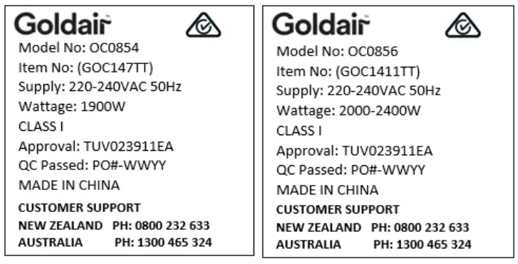 Goldair undertake to repair or replace this product at no charge if found to be defective due to a manufacturing fault during the warranty period.