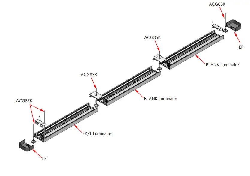 - Connect the bus boards using the connectors provided at end of each luminaires
