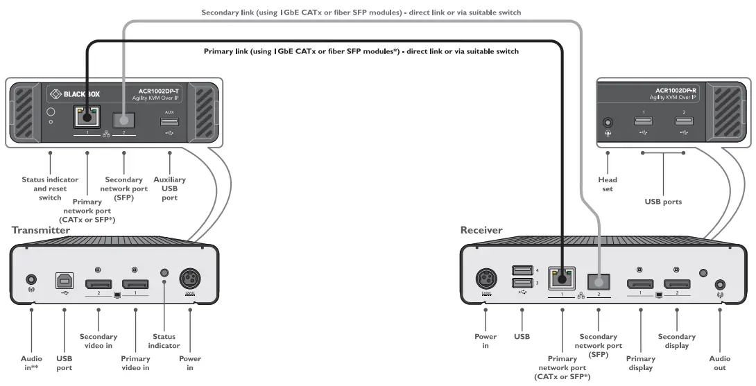 Agility modules are ready to automatically invoke teaming whenever the primary and secondary ports are both used to link transmitters and receivers. Teaming potentially doubles the available bandwidth for video-intensive applications and also provides redundancy in case one link is lost.