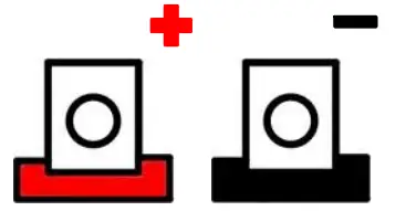 - Identify the positive and negative terminals. These are labeled and color-coded red for positive (+), and black for negative ( –).